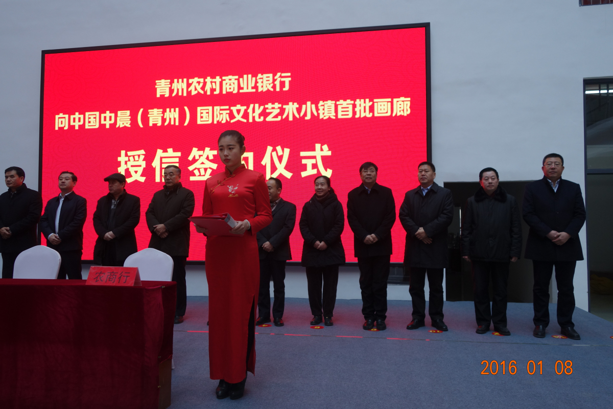 青州市农商行向中国中晨(青州)国际文化艺术小镇首批画廊授信签约仪式,授信额度为一个亿,共签约16户。