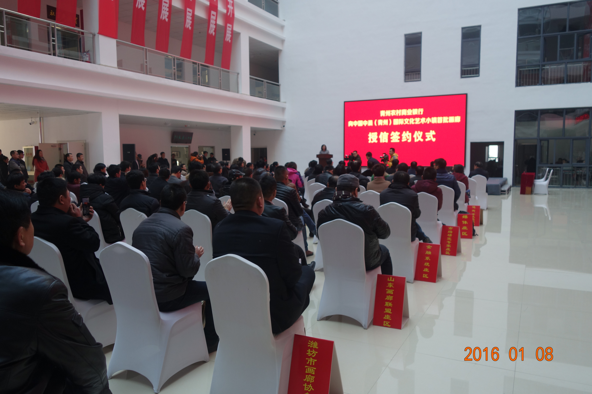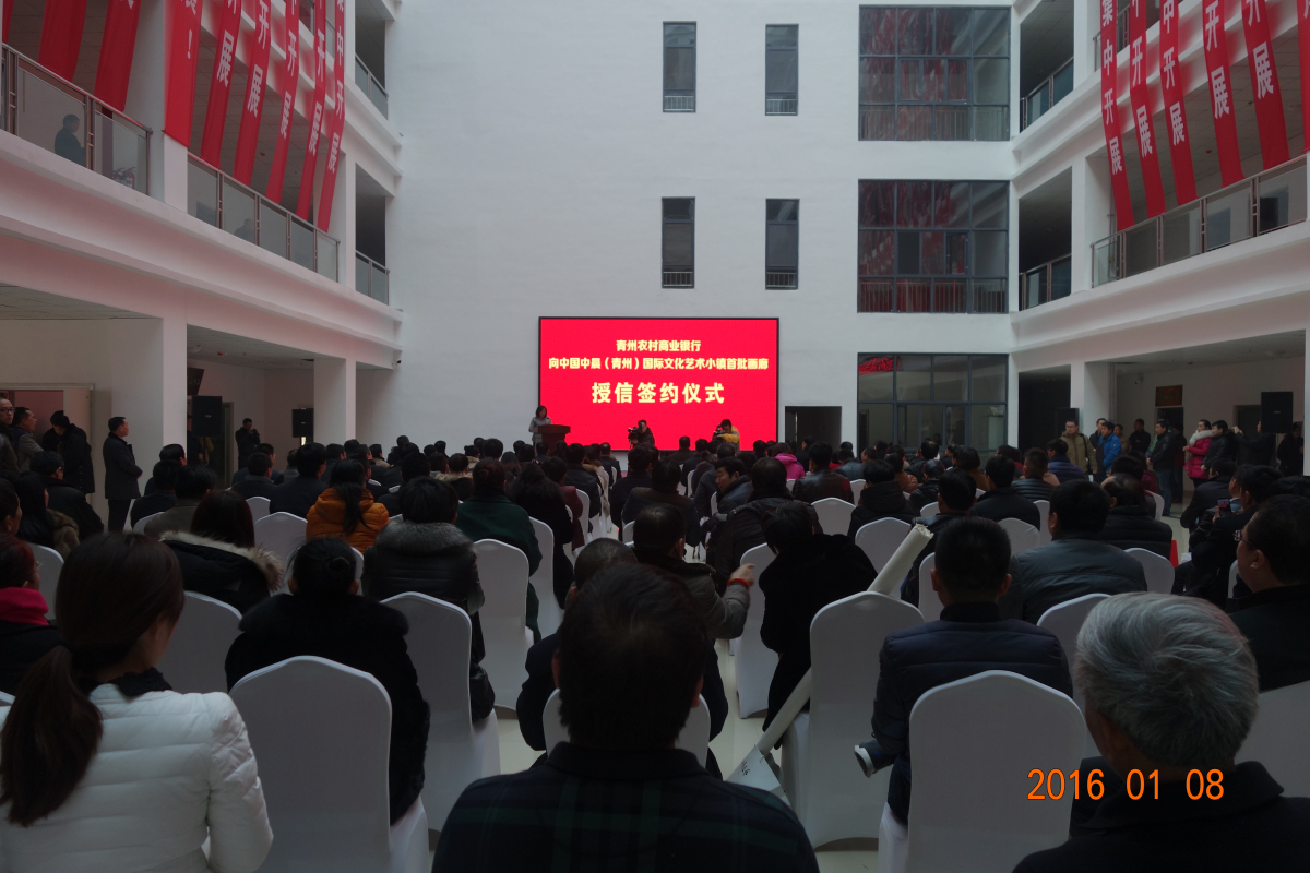青州市农商行向中国中晨(青州)国际文化艺术小镇首批画廊授信签约仪式,授信额度为一个亿,共签约16户。