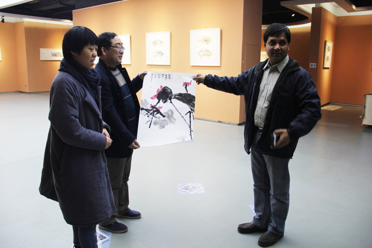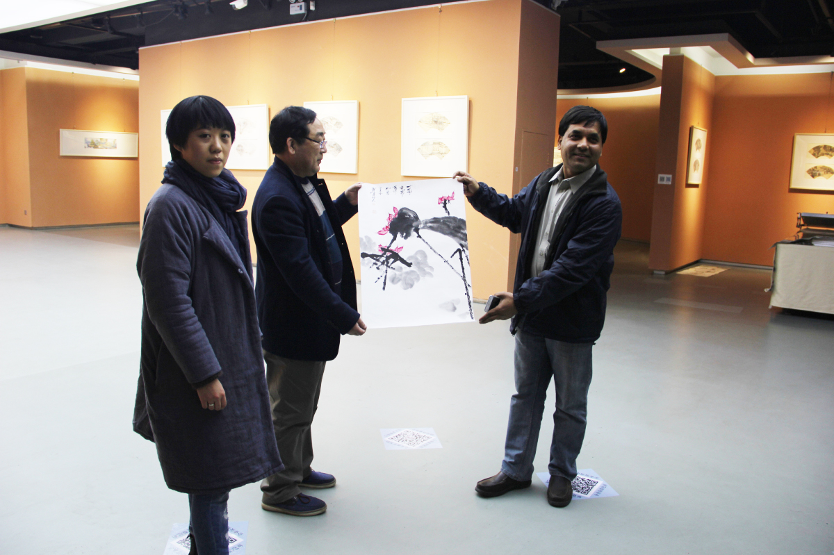 外国友人也喜欢中国的文化和艺术,来参观展览并购得喜欢的作品。