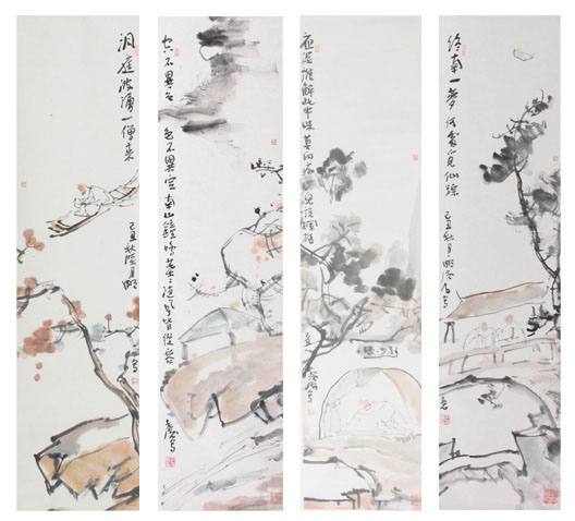 > 花鸟四条屏